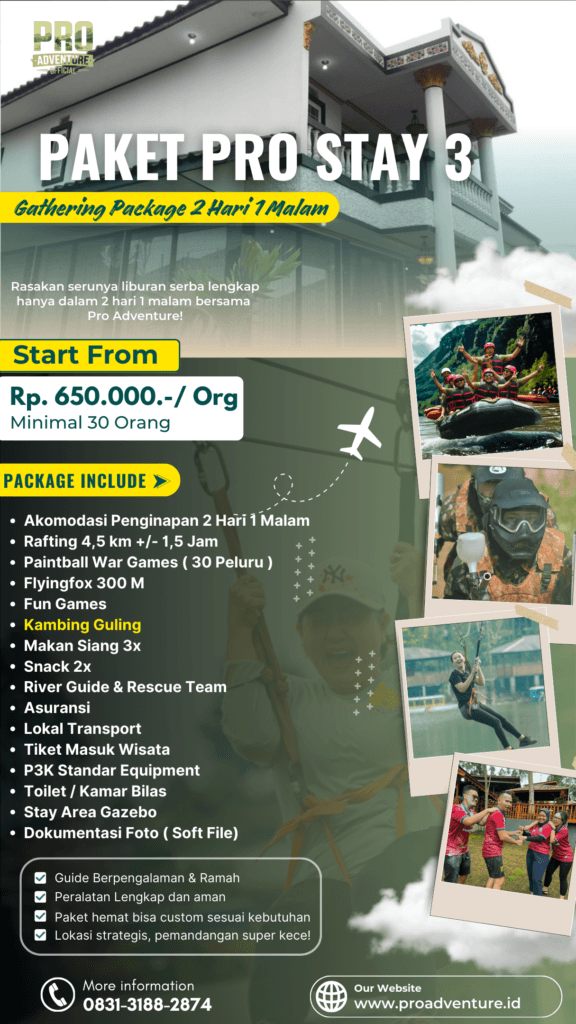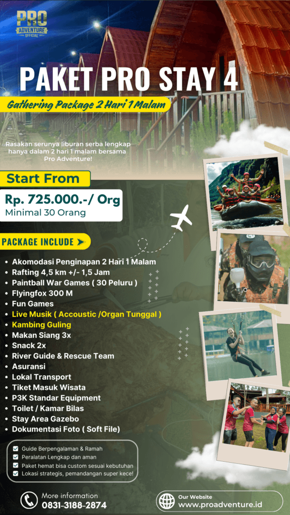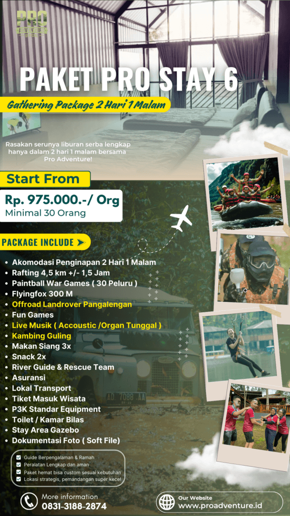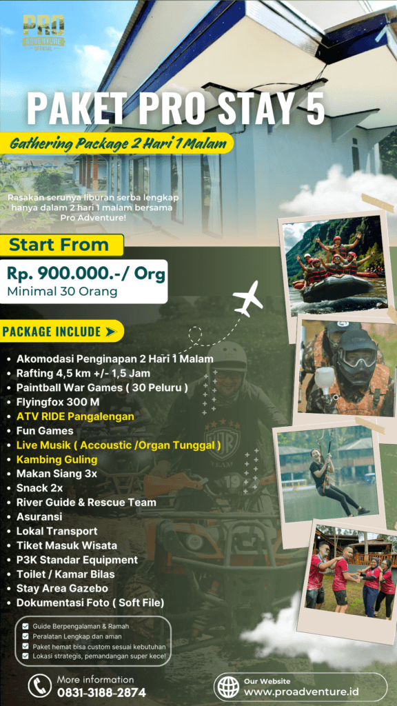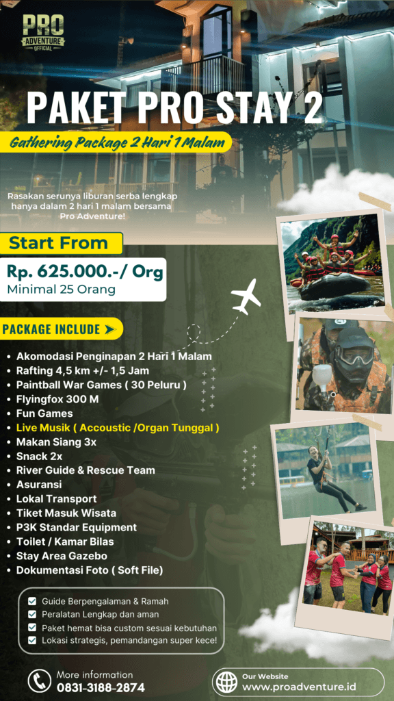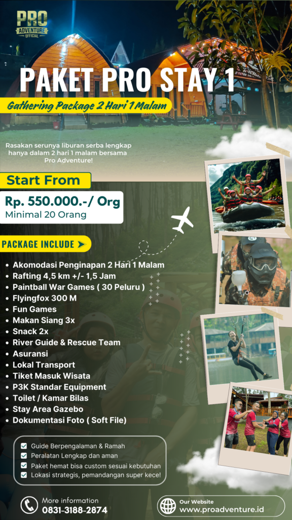 Lepas penat, recharge energi, dan bangun kekompakan tim di tengah alam indah Situ Cileunca, Pangalengan π²Pro Adventure hadirkan Paket Gathering 2 Hari 1 Malam (2D1N) β kombinasi sempurna antara petualangan dan kebersamaan!